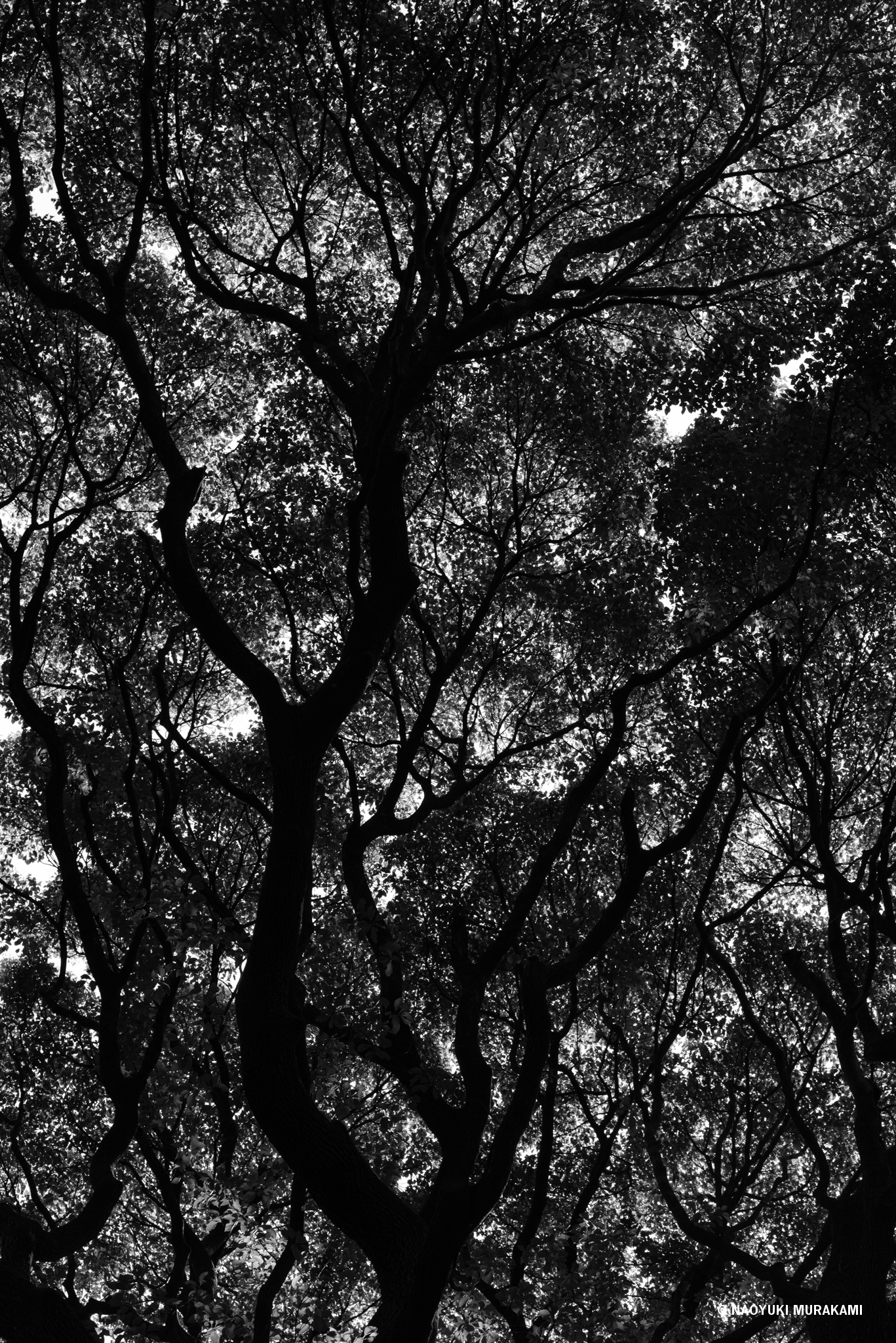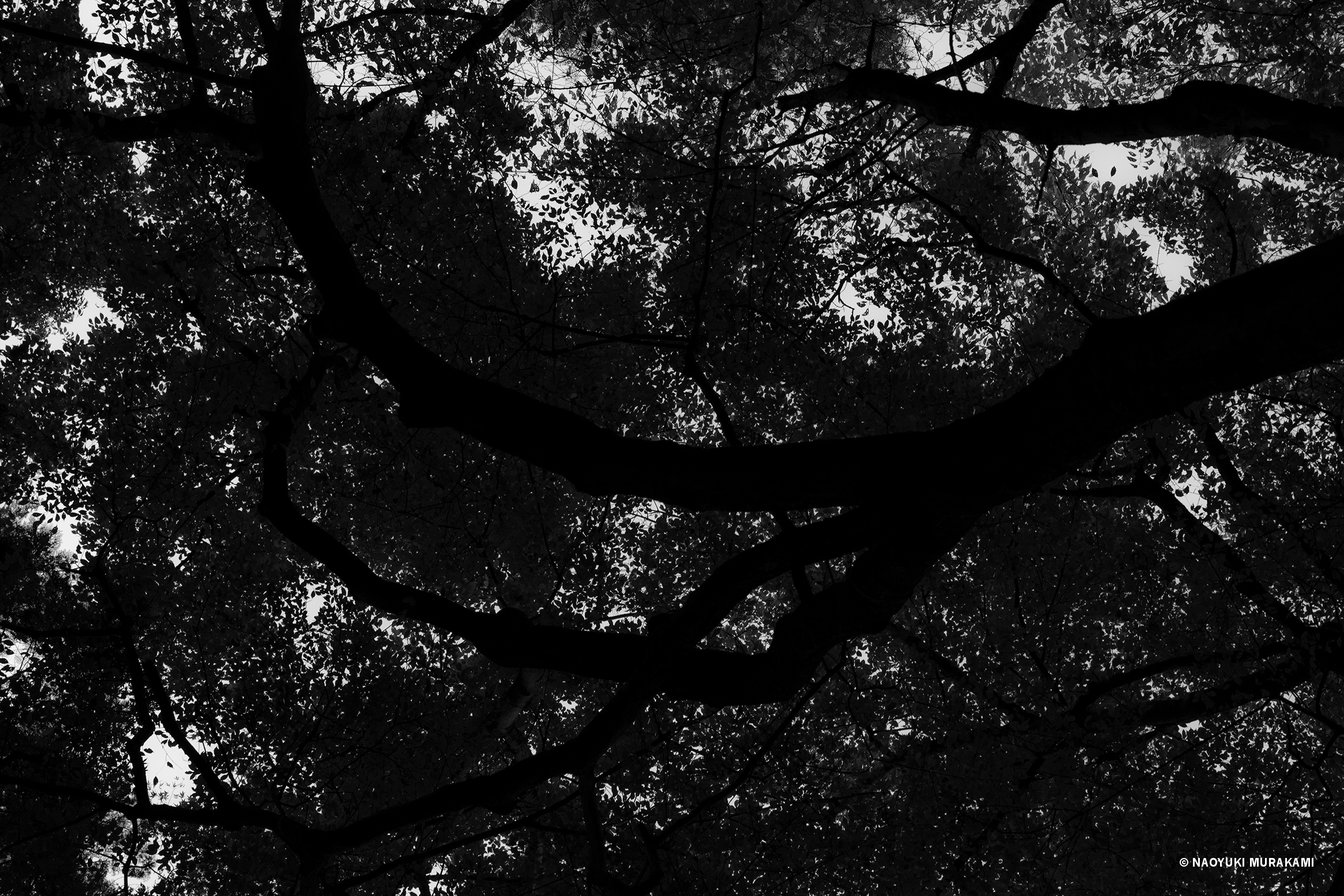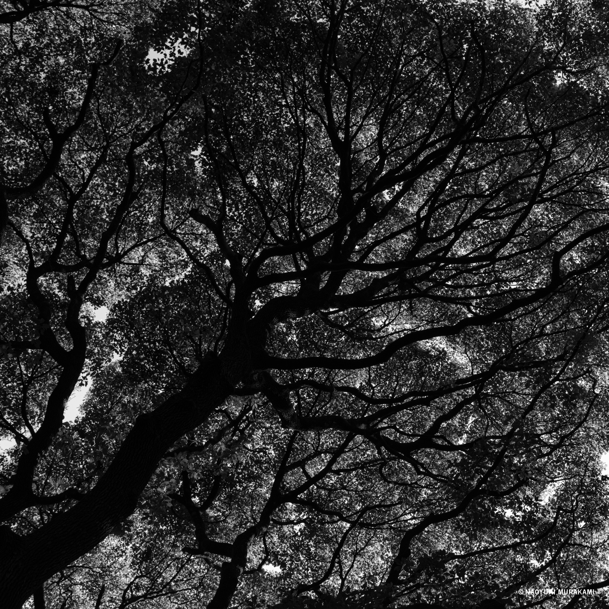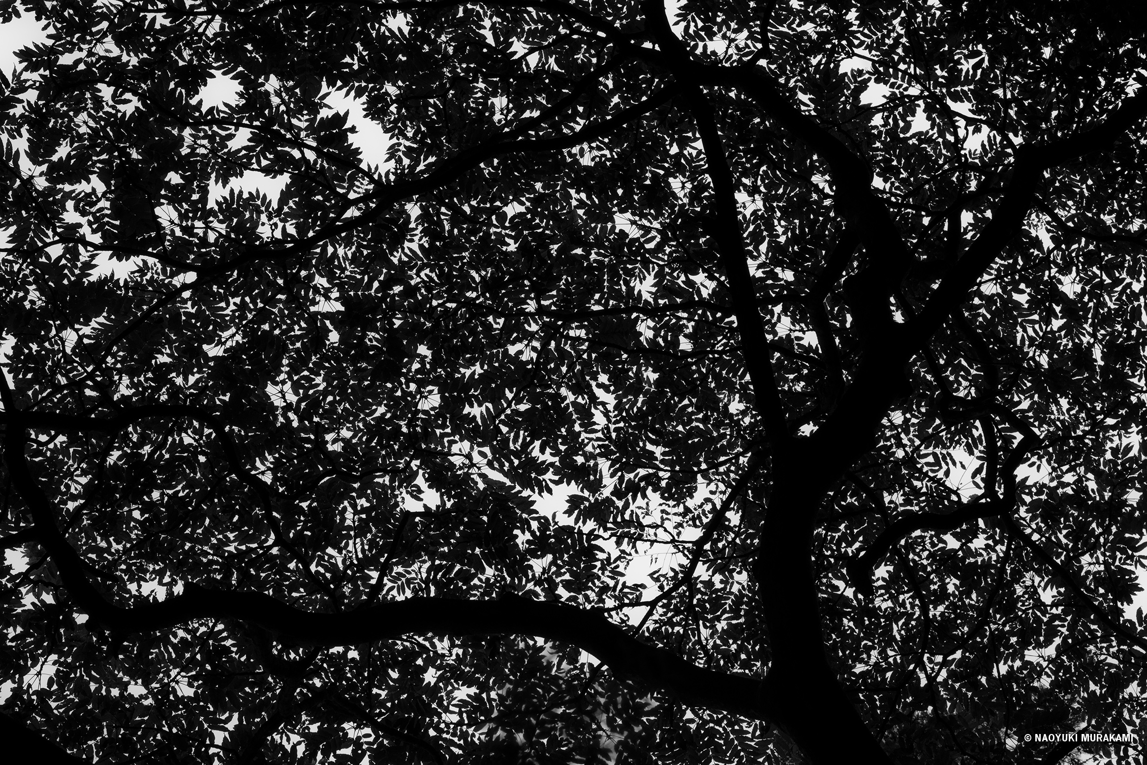 何度も枝分かれを繰り返し、その先に茂る葉の重なりが生むシルエットには、柔らかさがありながら生き物としての力強い「気」を感じる。