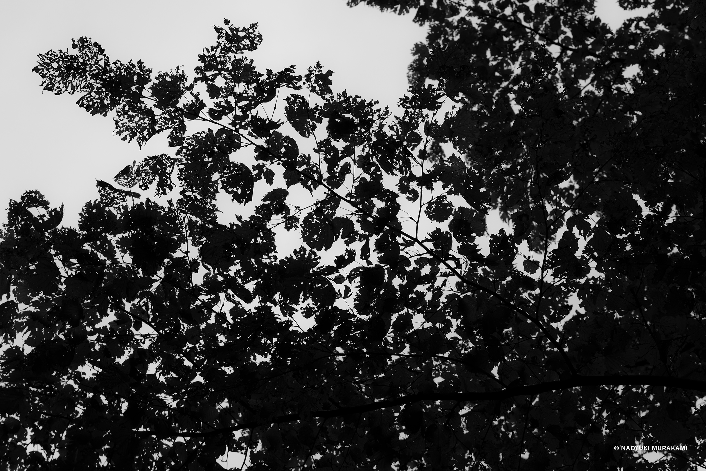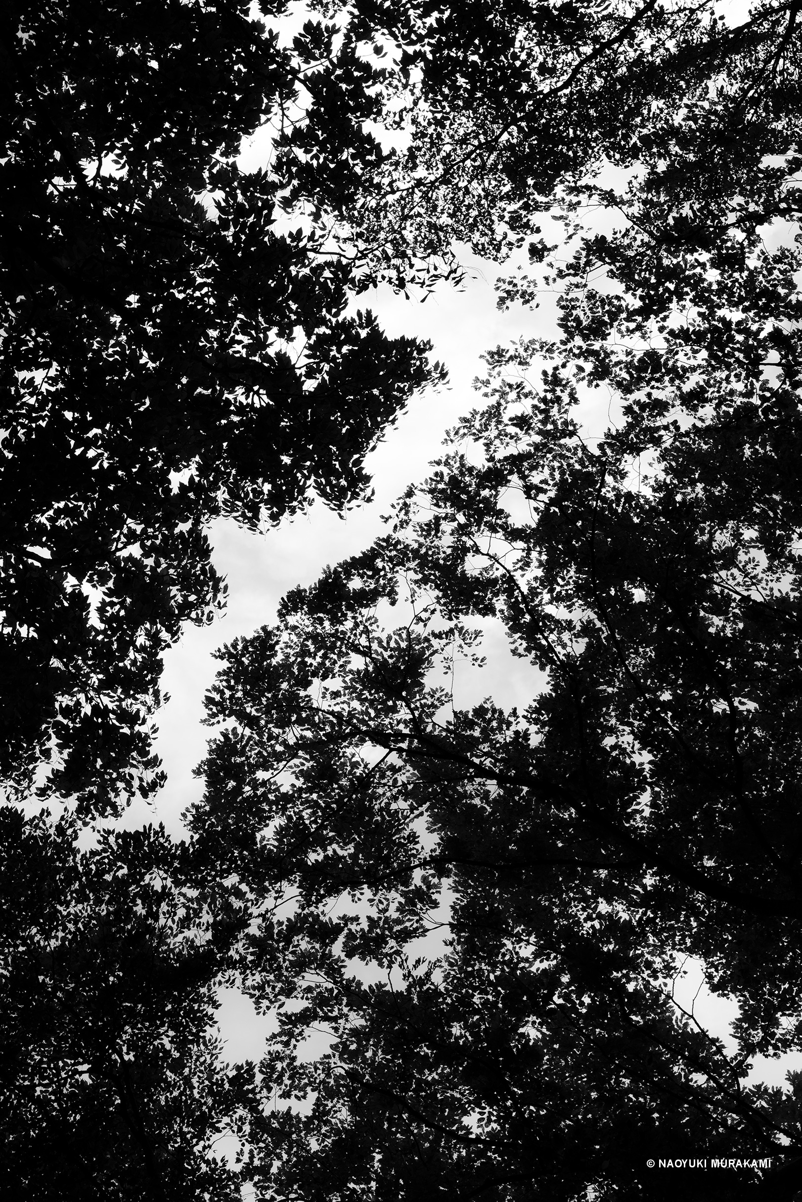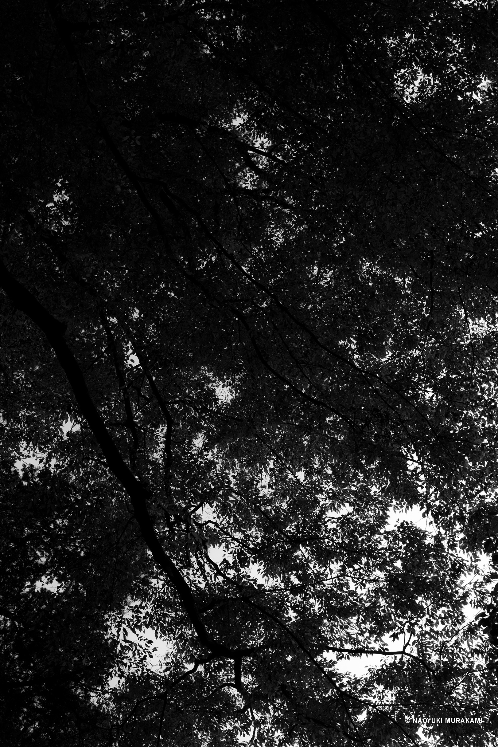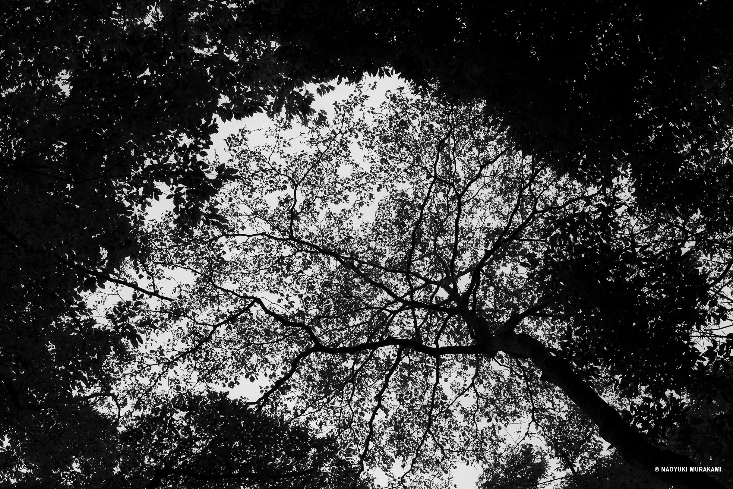 何度も枝分かれを繰り返し、その先に茂る葉の重なりが生むシルエットには、柔らかさがありながら生き物としての力強い「気」を感じる。