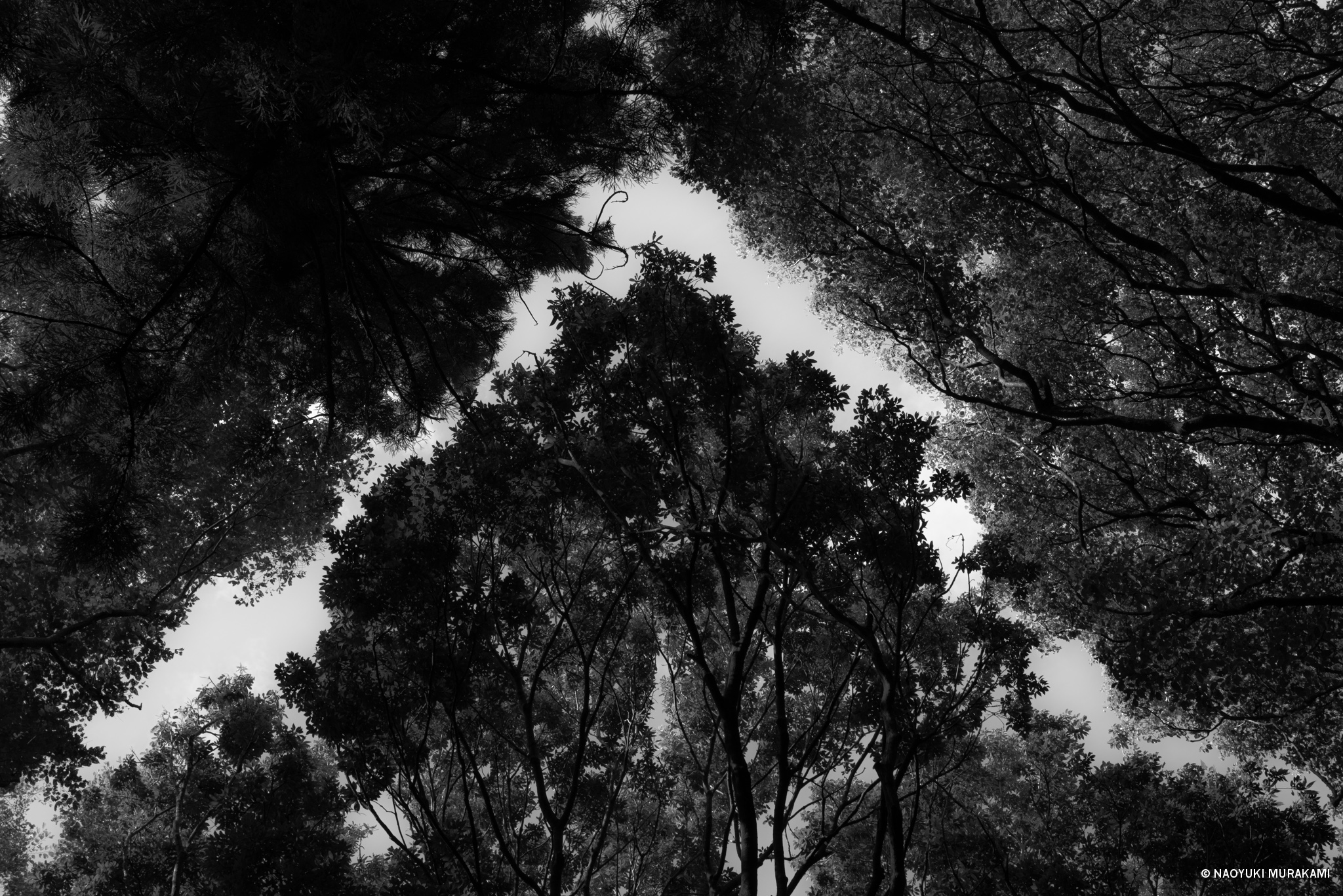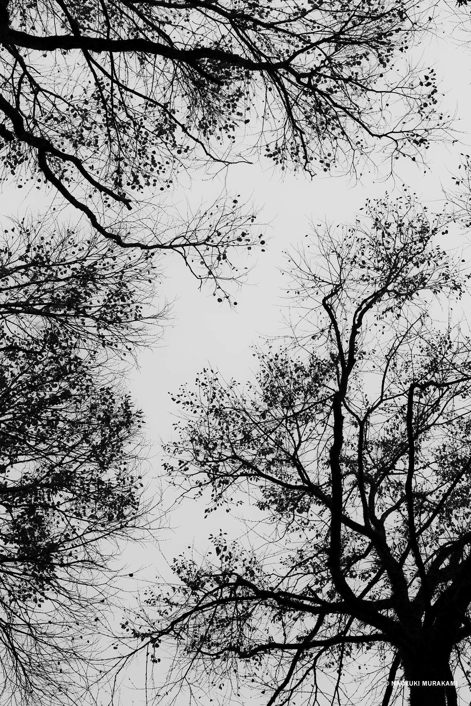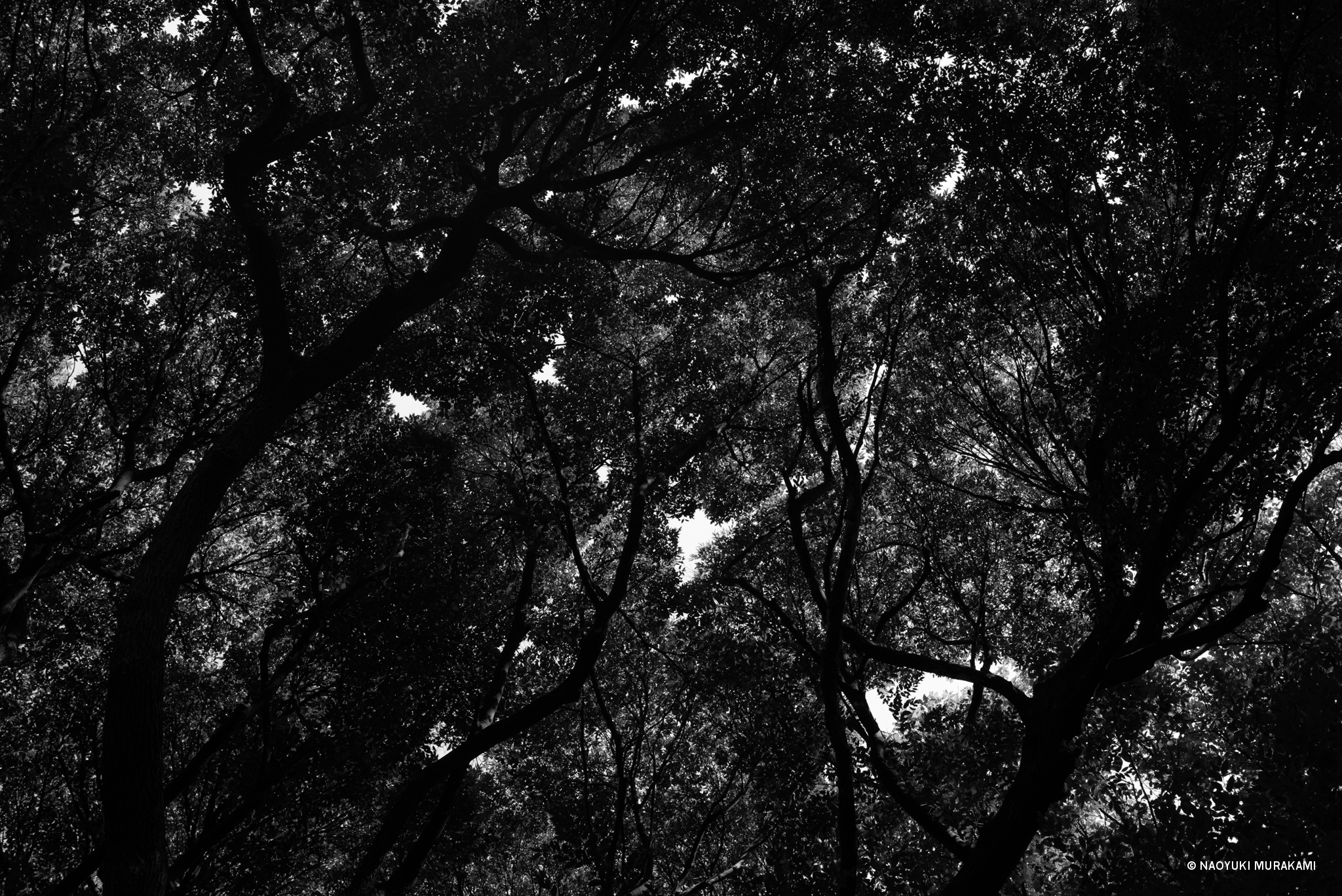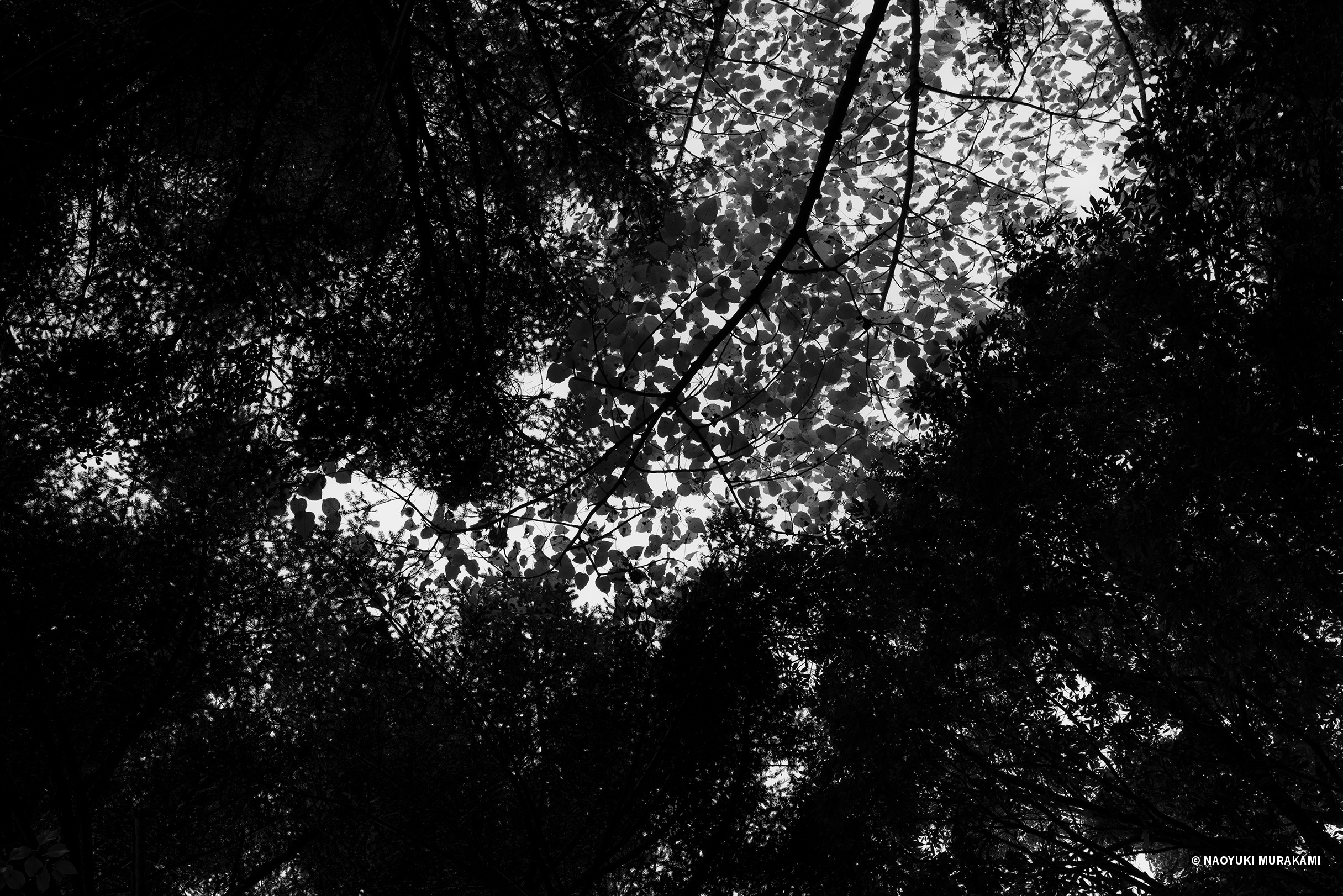 何度も枝分かれを繰り返し、その先に茂る葉の重なりが生むシルエットには、柔らかさがありながら生き物としての力強い「気」を感じる。